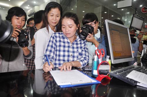 Chị ve chai ký giấy tờ để nhận lại hơn 1 triệu yen mới