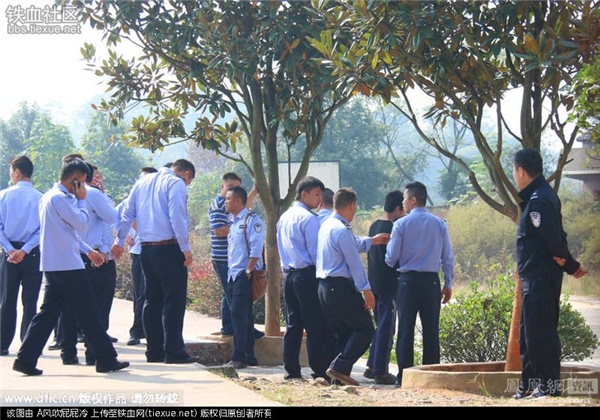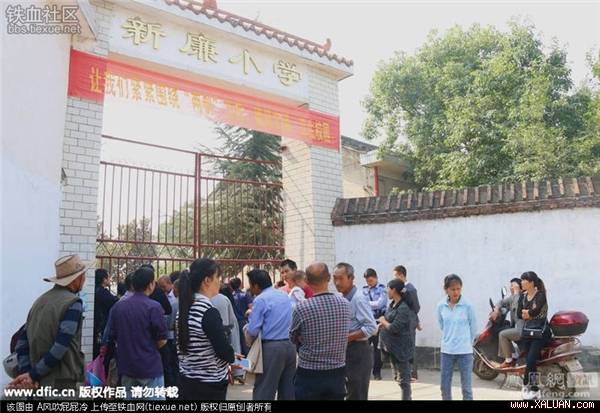 Người dân xung quanh hiếu kì vụ án mạng xảy ra ở trường Xinkang.