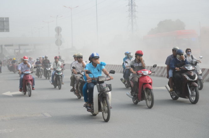 Không nói đến cảnh khói bụi ở những khu vực đang thi công đường sá hay những khu công nghiệp, chỉ cần đến giờ tan tầm cảnh khói bụi xe bao phủ gần như toàn thành phố đã trở nên quen thuộc với tất cả mọi người.