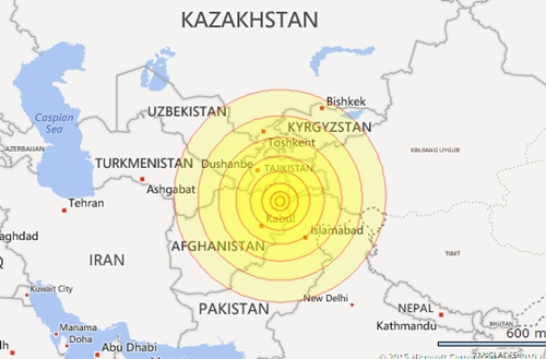 Theo Reuters, tâm chấn nằm tại dãy núi Hindu Kush, khu vực xa xôi hẻo lánh ở Afghanistan, ở độ sâu 213 km, cách Kabul 254 km về phía đông bắc.
