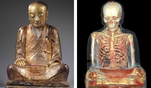Năm 2015, một bức tượng Phật cổ được tìm thấy trong một ngôi làng ở Trung Quốc đã được phân tích bằng chụp X-quang . Các chuyên gia nhận thấy một điều bất thường bên trong bức tượng rỗng - nó đã được lấp đầy bằng bộ xương của một tín đồ đã trải qua một nghi lễ tự ướp xác ghê gớm. Đây được xem là phần thưởng tuyệt vời cho tín đồ này. Ông được đặt bên trong bức tượng là để thể hiện sự tôn kính của các thế hệ sau.