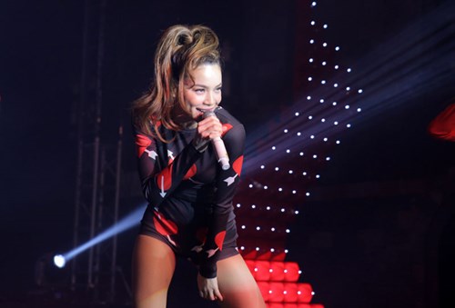 Trong sự kiện, Hà Hồ làm bùng nổ không khí bằng loạt hit trên nền nhạc EDM: Xin hãy thứ tha, What is love... khiến khán giả ở dưới không ngừng nhún nhảy theo.
