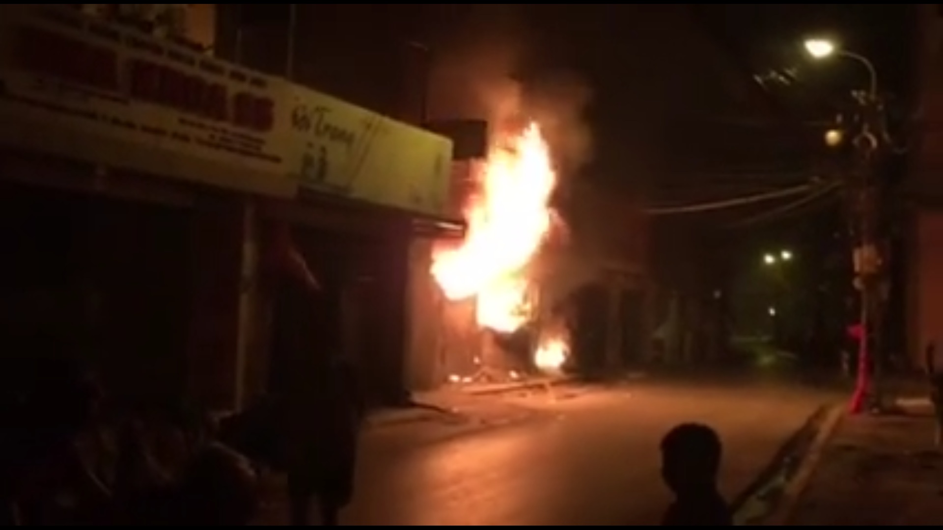 Người dân gọi không được nên đã dùng dùng gạch, đá ném lên tầng 2 để thông báo cho chủ nhà biết chạy thoát ra ngoài. 2 cửa hàng bán giầy và quần áo bên cạnh không có người ở bên trong.