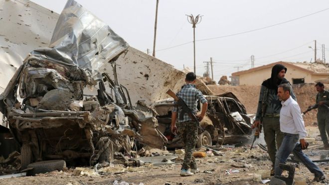 Đại tá Steve Warren, phát ngôn viên Lực lượng liên quân do Mỹ đứng đầu, phát biểu với báo giới ngày hôm qua rằng Lực lượng Dân chủ Syria (lực lượng nổi dậy) đã giành lại một diện tích khoảng 225 km2 từ tay phiến quân IS.