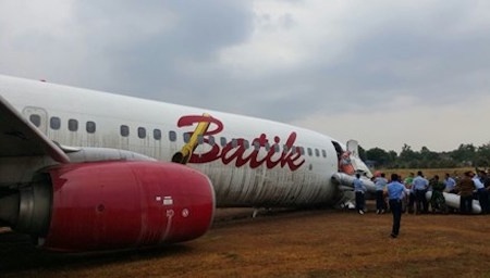 Chiều nay, lại một sự cố hàng không làm 167 người trên chiếc Boeing 737 của hãng hàng không Batik Air, Indonesia đứng tim. Đó là do chiếc máy bay này gặp sự cố trượt khỏi đường băng khi đang hạ cánh tại sân bay quốc tế Adisucipto, tỉnh Yoyakarta. Chiếc máy bay chao đảo chúi mũi về phía trước, nhưng rất may không có ai bị thương về thể xác nhưng tất cả đều bị vết thương tinh thần.