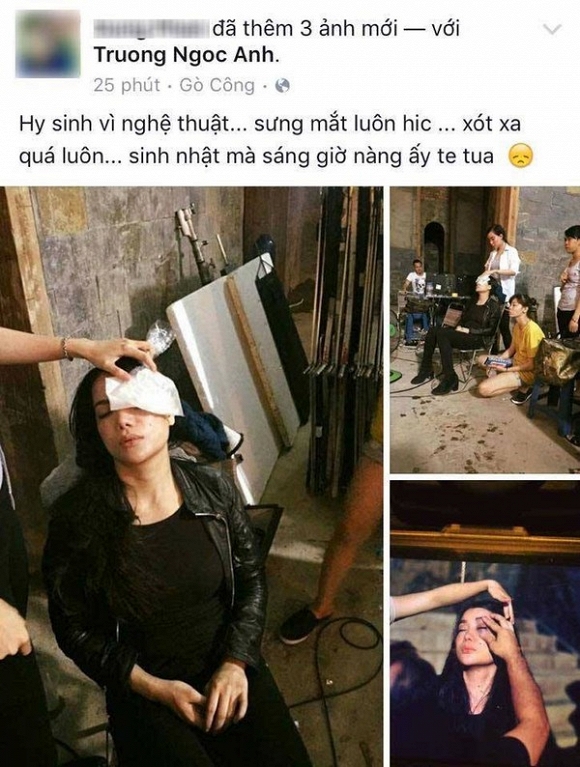 Trương Ngọc Ánh bị thương trên phim trường đúng ngày sinh nhật. Cô bị thương trong một cảnh quay khiến tím bầm một bên mắt.