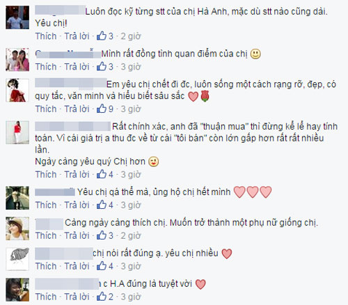 Nhiều cư dân mạng ủng hộ quan điểm của Hà Anh.