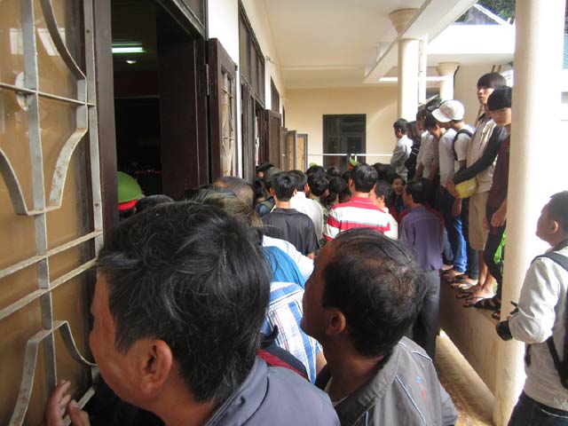Ngay từ sáng sớm nay, trời ở thị trấn Khe Sanh mù sương, nhưng người dân tập trung tới để chứng kiến phiên tòa rất đông. Dù vậy, vì hội trường phòng xử án nhỏ hẹp nên lượng người đông đảo đứng ngoài phải nhìn qua cửa sổ, trèo lên hành lang để theo dõi.