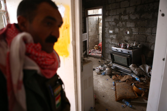 Trung tướng Ahmed Ali của Peshmerga cho biết những thành viên dân tộc thiểu số Yazidi thuộc lực lượng người Kurd đã thay thế những hình vẽ, chữ viết của IS bằng dòng chữ mới - Ảnh: The Wall Street Journal