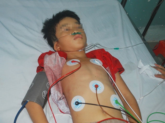 Bé Cao Thắng đang được điều trị tại bệnh viện