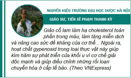 Giáo sư, tiến sĩ khoa học Trần Văn Sung - Nguyên Viện trưởng Viện Hóa học: "Việc tìm thấy chất phanosid hạ đường huyết mạnh, gypenosid chống u và bây giờ là adenosin tốt cho tim mạch chứng minh chất lượng giảo cổ lam Việt Nam rất tốt.