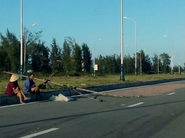 Ngư dân phơi tép biển trên đại lộ trăm tỷ (chụp ngày 20/11)