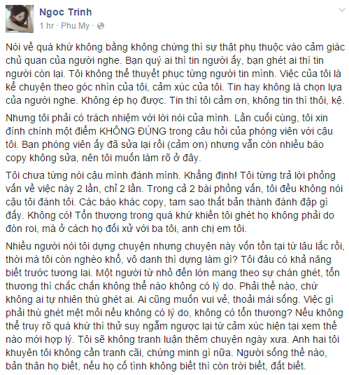 Ngọc Trinh khẳng định ḿnh đă bị bạo hành trong quá khứ