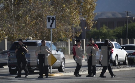 Cảnh sát Mỹ tại hiện trường vụ xả súng ở San Bernardino ngày 2/12.