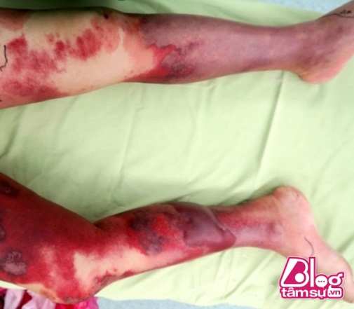 Một người phụ nữ đến từ Cao Hùng, Đài Loan (Trung Quốc) tên là Lâm Vịnh Hà, vài ngày trước có đi ăn hải sản cùng mấy người bạn. Không ngờ hai ba hôm sau sau chân của cô ấy lại tấy đỏ, xuất hiện bọng nước. Những bọng nước phòng rộp, đỏ ửng, đọng máu khiến người khác không khỏi kinh hãi khi nhìn thấy. Bác sĩ chẩn đoán các mô cơ và bắp chân người phụ nữ này đã bị viêm nên dẫn đến hoại tử. Ngay lập tức phải đưa vào phòng phẫu thuật cắt các mô bị hoại tử ở chân đi không sẽ rất nguy hiểm. Thậm chí nếu phương pháp đó không khả thi sẽ phải cắt cụt đôi chân để bảo toàn tính mang.