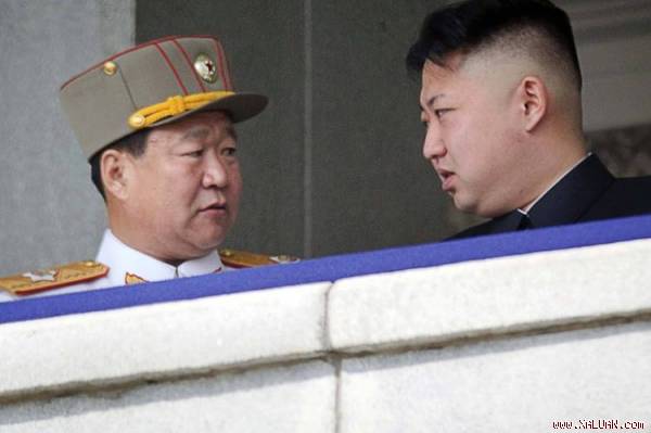 Ông Choe Ryong Hae nói chuyện với nhà lănh đạo Triều Tiên Kim Jong-un trong một cuộc diễu binh ở B́nh Nhưỡng năm 2012.