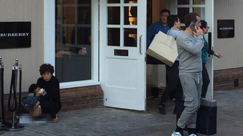 3. Cho trẻ đại tiện ngay trước cửa Burberry tại Anh