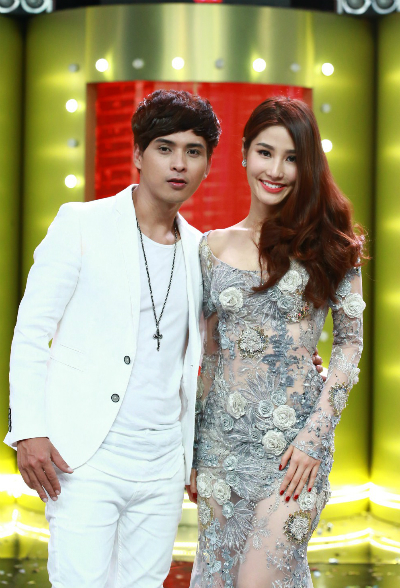 Cô tạo dáng điệu đà cùng giám khảo Chí Tài.