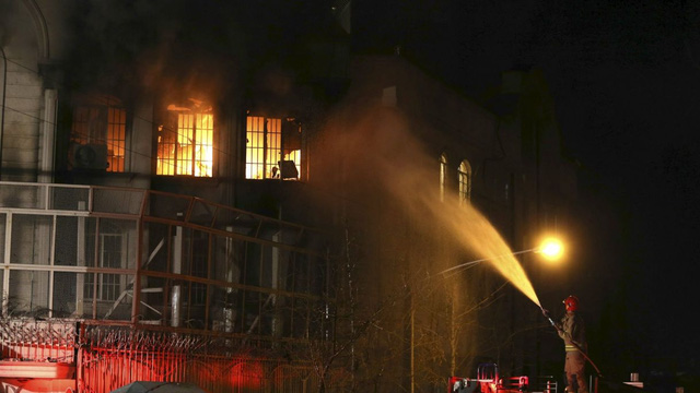 Một phần tòa đại sứ Saudi Arabia tại Tehran bốc cháy sau khi đám đông quá khích châm lửa đốt. Ảnh: Haaretz