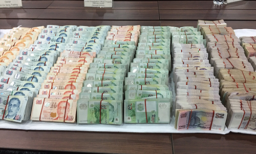 Cảnh sát Singapore đã thu hồi được 433.000 SGD cùng nhiều hàng hiệu xa xỉ được cho là do các nghi phạm mua bằng tiền ăn trộm.