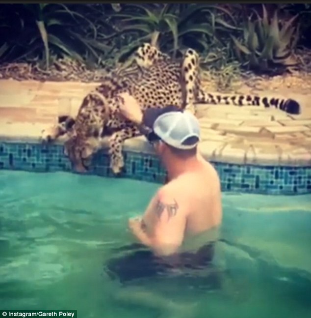 Sự việc hi hữu này xảy ra tại khu bảo tồn Tshukudu Game, Nam Phi. Vị du khách đến từ Auckland, New Zealand, anh đang mải bơi lội bỗng phát hiện có con báo đốm tiến về phía bể bơi. “Vị khách không mời” đột nhiên xuất hiện khiến Poley thoáng chút hoảng sợ.