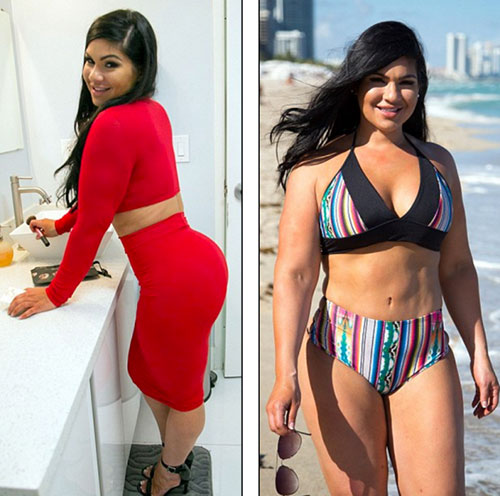 Marlene Chinea (phải) mạnh dạn chi tiền để có được vòng ba gợi cảm như thần tượng Kim Kardashian (trái)