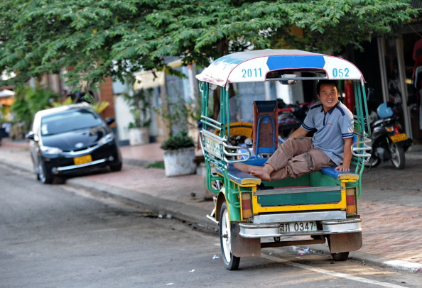 Một tài xế xe ba gác (tuk-tuk) đang chờ khách tại thủ đô Vientiane, nơi mà người Lào từng nghe tin đồn về Disneyland sắp được xây ở nước này. (Roslan Rahman/ GettyImages)