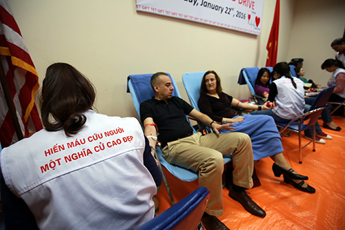 Sáng nay (22/1), tại số 170, Ngọc Khánh (Ba Đình), Đại sứ quán Hoa Kỳ đã tổ chức hiến máu nhân đạo với tên gọi “Quà Tết”. Đây là lần thứ 4 đơn vị này tổ chức hiến máu và thu hút được đông đảo nhân viên Đại sứ quán Hoa Kỳ, các Đại sứ quán khác, nhân viên của phòng Thương mại Hoa Kỳ, sinh viên,...