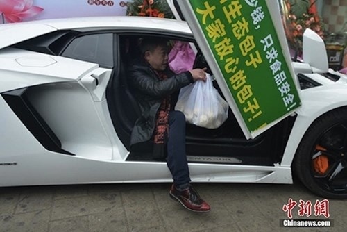 Chủ một tiệm bánh bao ở Thành Đô, Trung Quốc đã nghĩ ra chiêu tiếp thị cực kì "sang chảnh" là đích thân ông lái siêu xe Lamborghini đi giao bánh cho bất kì khách hàng nào đặt trên 100 chiếc bánh bao.