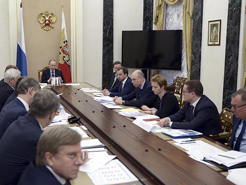 Tổng thống Nga Vladimir Putin chủ trì cuộc họp về tư nhân hóa các doanh nghiệp nhà nước tại Điện Kremlin hôm 1-2 Ảnh: REUTERS