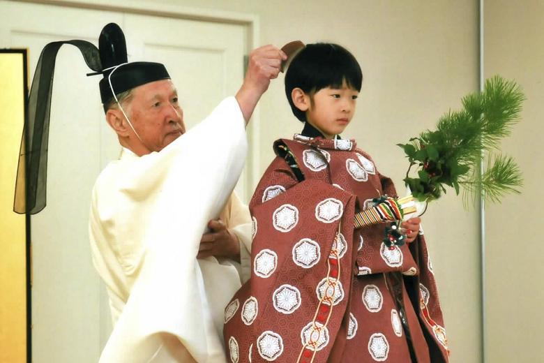 Hoàng tử bé Hisahito trong một nghi lễ của hoàng gia.