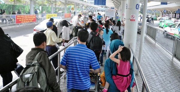 Càng gần về trưa các chuyến bay liên tục đáp xuống sân bay. Rất nhiều hành khách các tỉnh Huế, Đà Nẵng, Bình Định, Vinh… ra trước sảnh chờ xếp hàng dài để đến lượt đón taxi. Tại đây, có rất đông lực lượng an ninh của sân bay cũng như lực lượng công an làm nhiệm vụ điều tiết giao thông nên dù đông nhưng không xảy ra tình trạng ùn ứ.