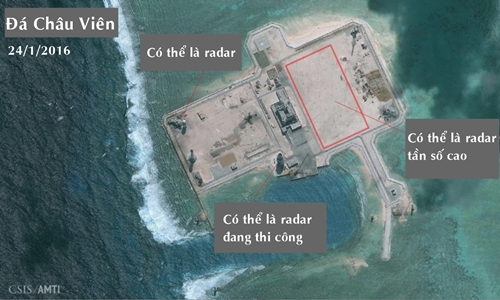 Ngày 23/2, Trung Tâm Nghiên cứu Chiến lược và Quốc tế (CSIS) của Mỹ cho biết những hình ảnh chụp vào cuối tháng một cho thấy Bắc Kinh có thể đã bố trí hệ thống radar tần số cao tại đá Châu Viên, một trong 7 thực thể ở quần đảo Trường Sa của Việt Nam bị Trung Quốc bồi đắp, cải tạo và xây dựng trái phép.