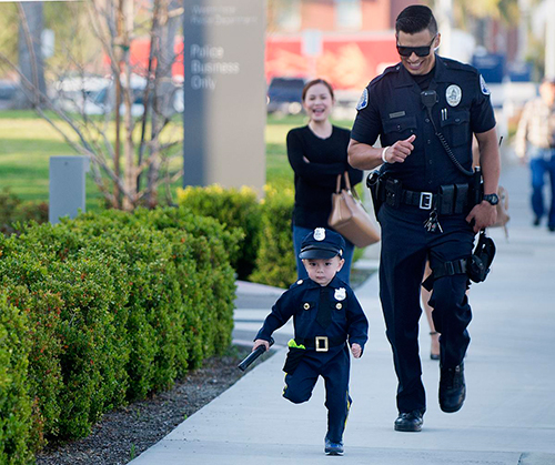 Sĩ quan Mike Gradilla đã giúp Tayden Nguyen trở thành cảnh sát nhí trong một ngày. Ảnh: Ocregister