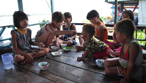 Cùng xóm, bà Trần Thị Tha, 53 tuổi hằng ngày bơi ghe đi lên xóm trên chờ chủ ghe vứt cá thối xuống sông để vớt về bán. Bà cho biết, đi từ sáng sớm đến chiều tối mới về, ngày kiếm được vài chục ngàn, thứ bà kiếm là cá tra trong ghe chết thối, bốc mùi nồng nặc, chủ ghe không sử dụng được nữa nên quăng ra sông. Bà chực ở đó vớt về bán cho người ta xay làm thức ăn cho cá. “Sống nhờ thứ người khác vứt đi khổ lắm, bữa đói bữa no. Tôi mơ ước có được hộ khẩu để con cháu lên bờ đi làm công nhân, trẻ nhỏ được học hành chứ như thế này tương lai mịt mờ lắm”, bà Tha buồn bã. Ở đây hầu hết từ nam phụ lão ấu đều mù chữ. Thế nên con đường sáng nào cho họ là câu hỏi hiện thời chưa có lời giải.
