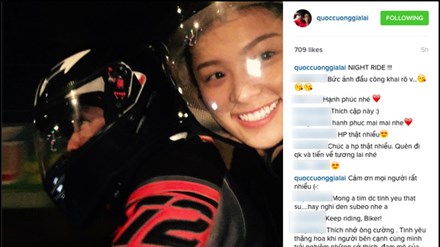 Ngày 13/3, Cường Đô La đăng bức ảnh anh lái mô tô chở người đẹp đang nở nụ cười rạng rỡ. Bức ảnh lập tức gây chú ư cộng đồng mạng v́ lần đầu tiên Cường Đô La đăng ảnh rơ mặt bạn gái 9x.