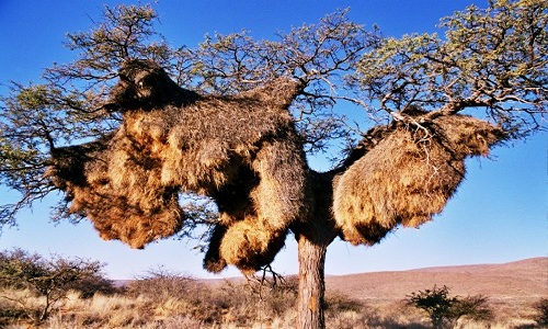 Loài chim thợ dệt ở châu Phi có tập tục cùng làm một chiếc tổ khổng lồ bao bọc quanh những chiếc tổ của mình để tăng tính gắn kết giữa các “hộ” với nhau. Đây chính là lí do khiến chiếc tổ của chúng nặng nề, khổng lồ, lên tới cả tấn.
