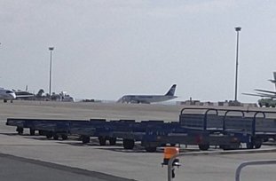 Tấm hình đầu tiên chụp chiếc máy bay bị không tặc ở sân bay Larcana. Ảnh: Twitter
