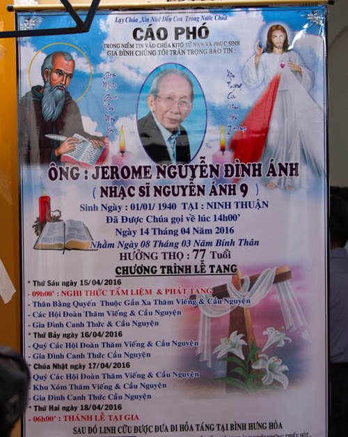 Cáo phó trong tang lễ của nhạc sỹ Nguyễn Ánh 9 sáng nay.