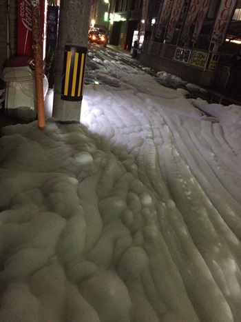 Tại khu Tenjin thuộc thành phố Fukuoka, những người điều khiển xe máy và đi bộ đã gặp không ít khó khăn khi phải vượt qua những đống bọt trắng tràn trên đường, theo Mashable.