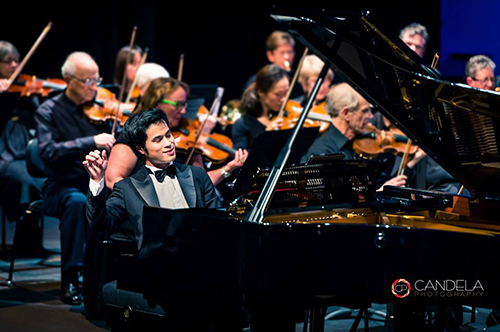 Hoàng Phạm trong một buổi biểu diễn cùng giàn giao hưởng Whitehorse tại Melbourne.