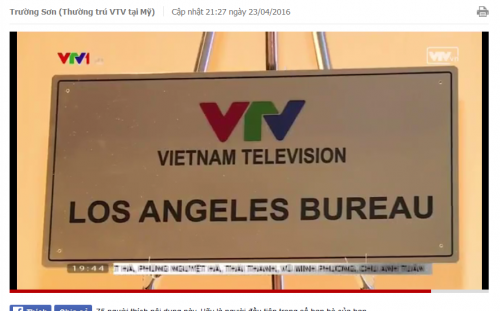 Đài truyền hình nhà nước VTV vừa khai trương một văn phòng đại diện tại Los Angeles vào ngày thứ Sáu 22 tháng Tư. Mặc dù, trang mạng của đài VTV nhấn mạnh rằng “đây là “sự kiện được nhiều kiều bào mong đợi”, và có sự hiện diện của một Ủy viên trung ương đảng cũng như Tổng lãnh sự tại San Francisco, sự kiện khai trương chi nhánh này đã diễn ra một cách bí mật.