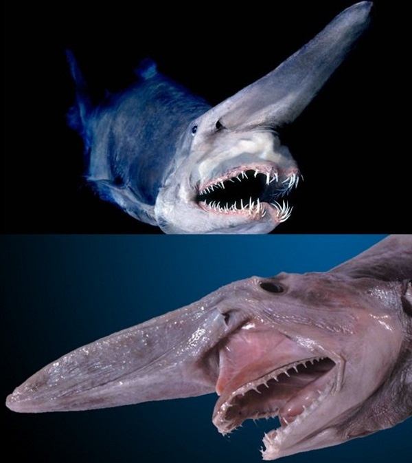 Chúng còn có tên gọi Mitsukurina Owstoni, một loài cá mập biển sâu có ngoại hình kỳ dị nhất so với các loài cá mập khác. Chúng có mũi khoằm dài giống mỏ chim, phần sừng dài hơn mõm giống như một cái bay.