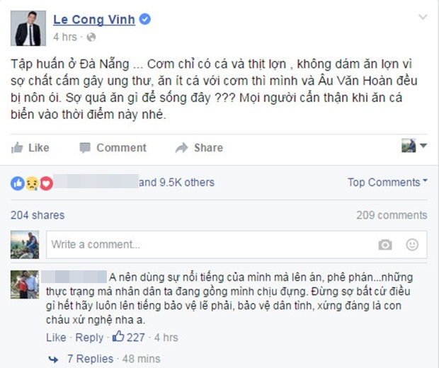 Old  Default Lê Công Vinh chia xẻ trên mạng: “Mọi người cẩn thận khi ăn cá biển vào thời điểm này nhé.”