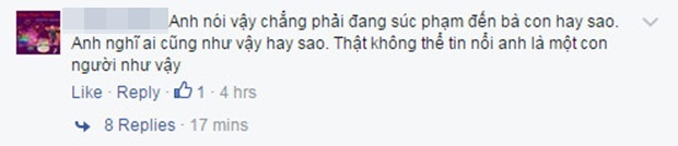 Bên cạnh đó cũng có một số ý kiến phản đối, một bạn viết: “Anh nói vậy chẳng phải đang xúc phạm đến bà con hay sao? Anh nghĩ ai cũng như vậy hay sao? Thật không thể tin nổi anh là một con người như vậy.”