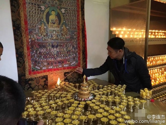 Nam diễn viên 53 tuổi cùng các cao tăng cùng nhau ăn bánh kem luận pháp. Lý Liên Kiệt còn thắp đèn cầu nguyện.