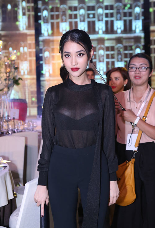 Tham dự đêm tiệc của Hoa hậu Thu Hoài hôm 25/4, Mai Hồ để lộ nội y lấp ló sau lớp áo mỏng, tuy nhiên vòng 1 phô quá đà khiến style của cô không được đánh giá cao.