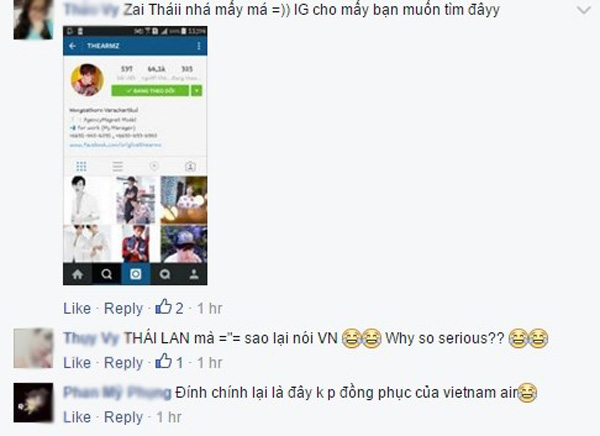 Sau vài giờ đăng tải, nhiều cư dân mạng đã 'bóc mẽ' chiêu trò 'câu like' của trang mạng xã hội kể trên. Nhiều người cho biết anh chàng trong ảnh là tiếp viên hàng không người Thái Lan, chứ không phải 'trai đẹp Việt Nam' như nhiều người lầm tưởng.