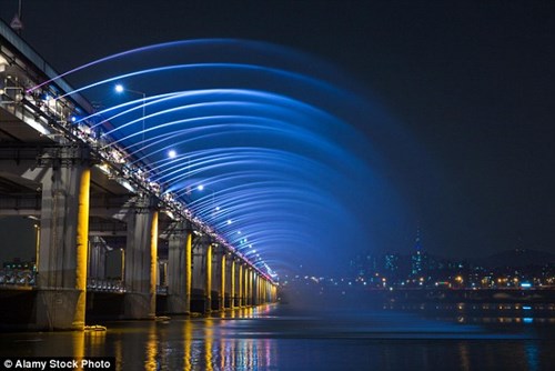 Hình ảnh cầu Banpo và màn phun nước cầu vồng nổi tiếng.