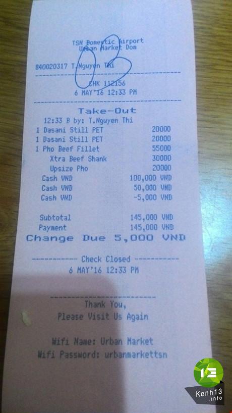 Mới đây, một vị khách đã nếm trái đắng khi phải trả tới 105.000 cho một bát phở tại sân bay Tân Sơn Nhất. Cụ thể, khách hàng này đã phải móc ví trả một số tiền “không tưởng” đối với một bát phở. Theo hóa đơn, một tô phở thập cẩm tại tiệm phở này có giá 105.000 đồng, trong đó bao gồm 55.000 phở trẻ con + 30.000 thịt mềm + 20.000 phở người lớn.
